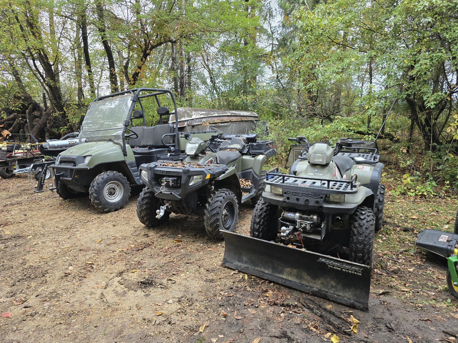 ATVs: Polaris 700 Ranger XP 4×4 w/ 300 Hrs & 1,557 Miles, w/ Dump Bed & Front Receiver; Polaris Sportsman X2 500 HO 4×4, w/ Dump Box & FM Hitch; Polaris Sportsman 400 4×4 w/ Front Mount Winch and Receiver w/52” Blade;