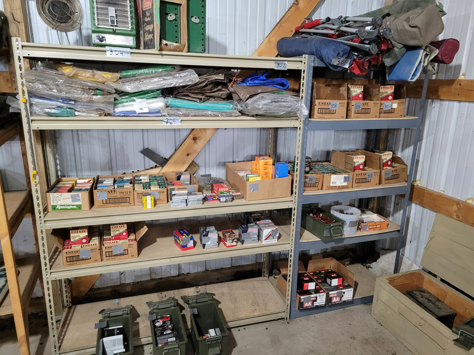 Ammo, Shop & Tools: Ammo: HSM 300 Mag. Rnds (5 boxes x 20rnds/box); 18 boxes Hornady 17 HMR Rnds (50rnds/box); 38 boxes Wolf .223 Remington Rnds (20rnds/box); Aguila 22 Super Max. Rnds; 308 Winchester Rnds; 100 Cartridge Ball 7.62 Nato; 30 Boxes of Estate 12ga-8 Shot; 20 boxes of 12ga-5 Shot; 8 Boxes of Winchester 12ga-8 Shot & 2 Boxes of 7.5 Shot; 9mm Rnds; 5mm Pellets; 6 Boxes of 20ga Slugs; 30 Boxes MISC 20ga Rnds; 10 Boxes Winchester 12Ga-8 Shot; 14 Boxes 12Ga-6 Shot; 2 Boxes 12ga-5 Shot; Numerous Boxes of MISC 12ga Rnds; 10ga T-Shot; 22ga Rnds; Partial Box of 16ga-4 Shot; Ammo Crates;