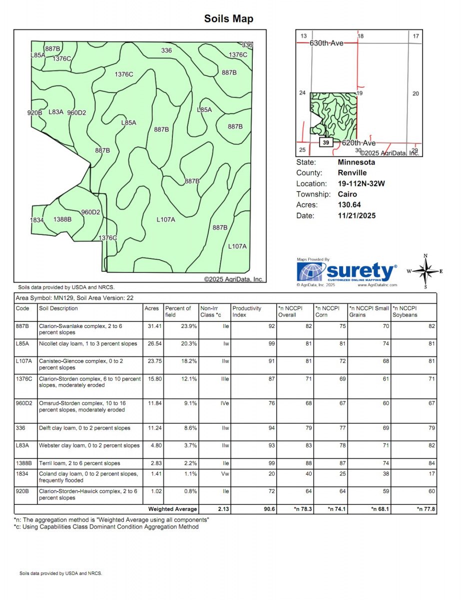 *Note: All acres are published based on Renville County Online Records and USDA records. All maps are a representation, and may not depict actual parcel lines or acreage.
