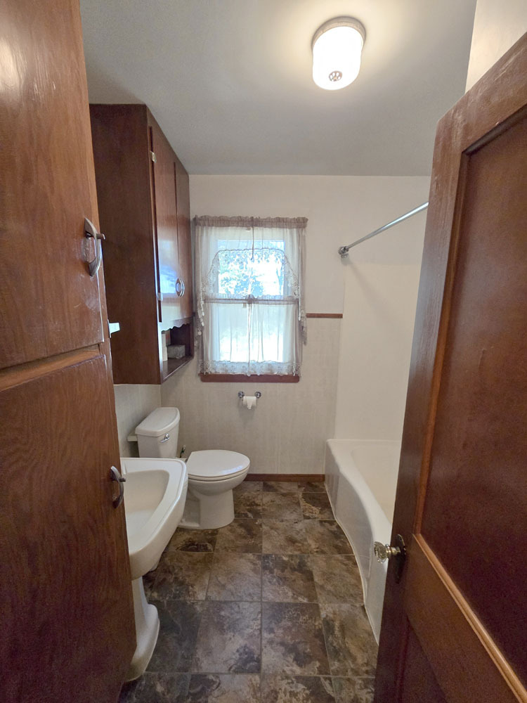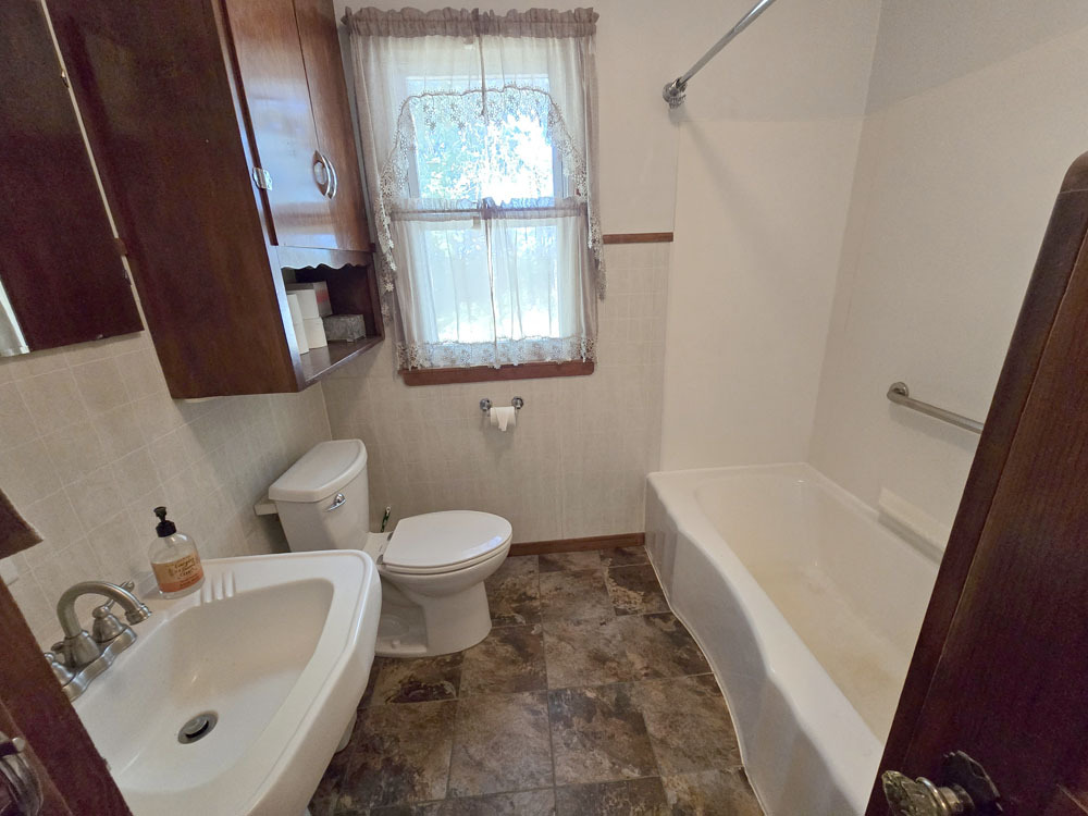 Main Floor: South entry from the maintenance-free composite deck to mud room with vinyl tile floors. Large eat-in kitchen with updated oak cabinets and vinyl tile floors. Family room with closet and glass French door with deck access. 2 bedrooms with hardwood floors, 1 with walk in closet. Den/nonconforming bedroom with carpet. Full bath with tub/shower combo and linen cabinet.