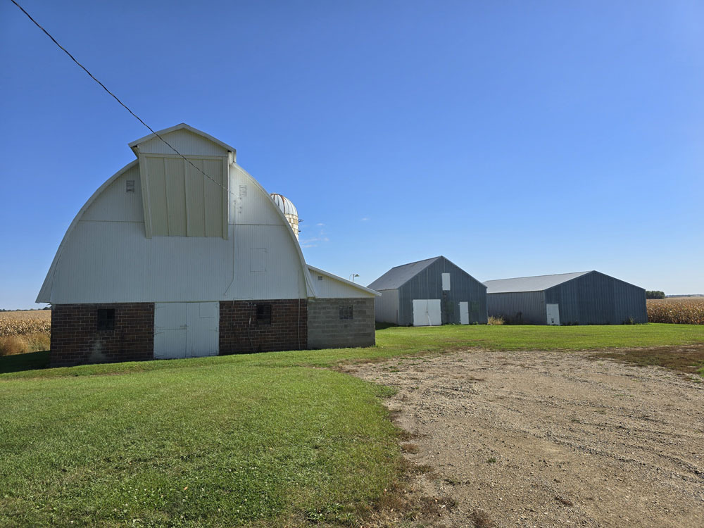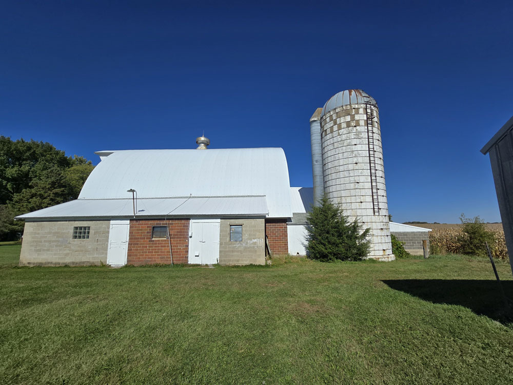 Exterior/Outbuildings: Steel siding, updated windows, composite deck. Detached double garage with cement floors and additional storage space, machine shed with sliding door on both ends and dirt floors, pole shed with sliding door on south side, hog barn with cement floors, elect, and 8 ft double doors, large barn with newer steel roof, cement floors, insulated milk house, multiple smaller storage sheds.
