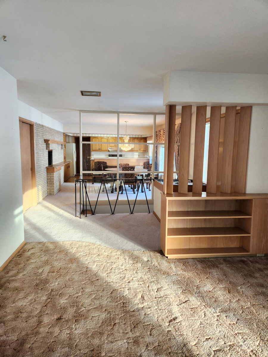Main Level: Eat-in kitchen combined with dining room, living room with carpet floors, 3 bedrooms with carpet, 3/4 with bath tub.