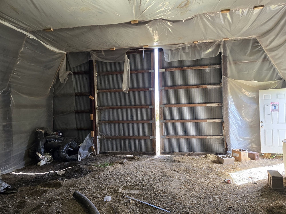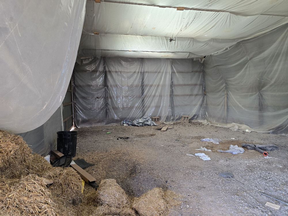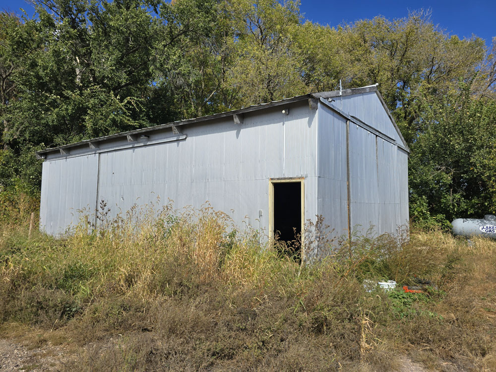 - 28×45 Machine shed with dirt floors, 12ft side walls, connected to power