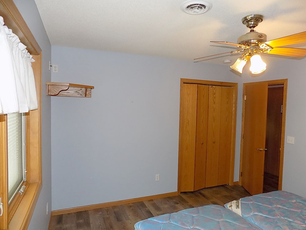 Lower Level: Open area family room with carpet floors. 2 bedrooms with carpet floors. 3/4 bath. Utility room. Storage room with built-in shelves.