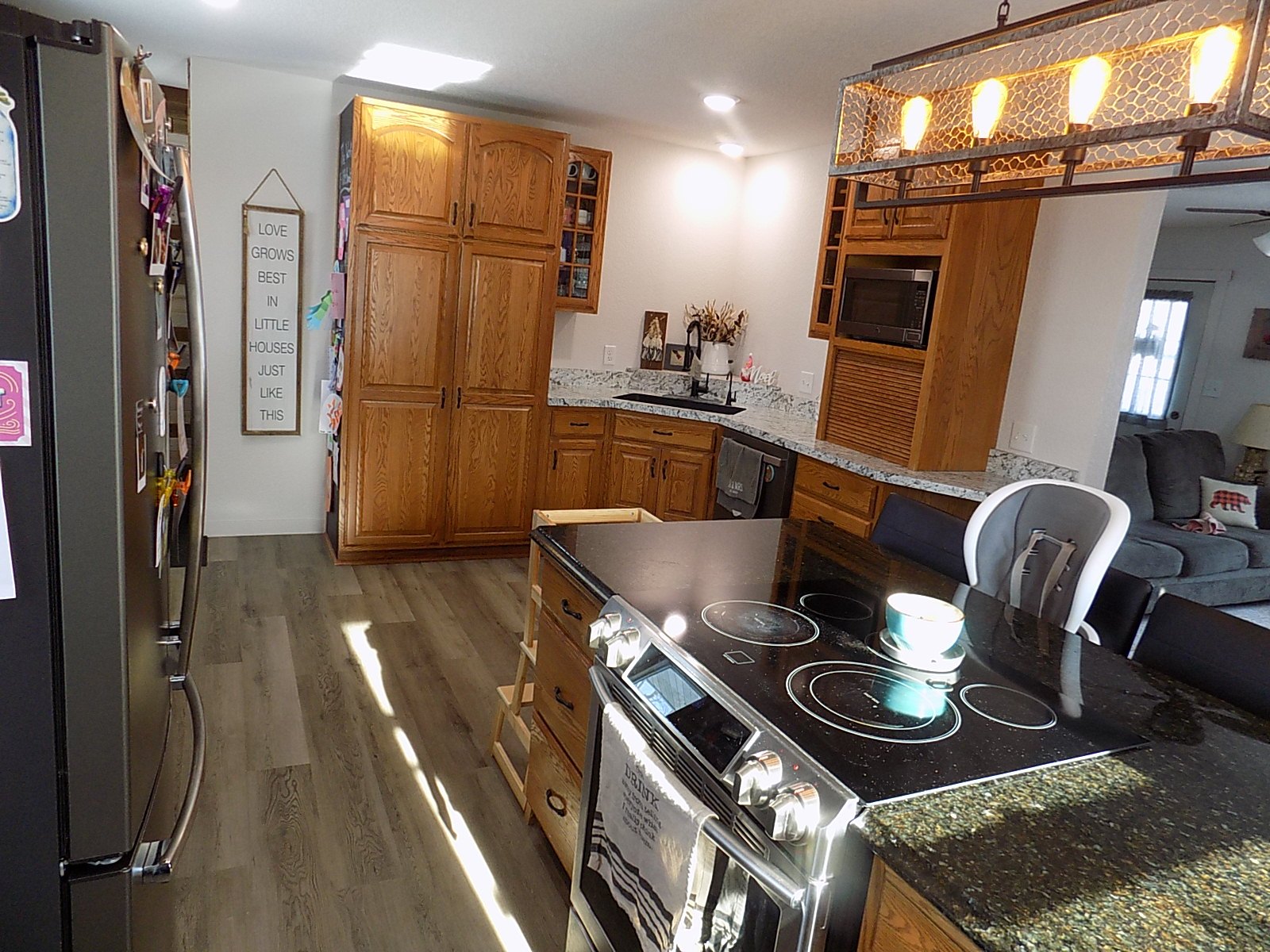 Main Level: Open concept, eat -in kitchen, Island with built in Stove top, living