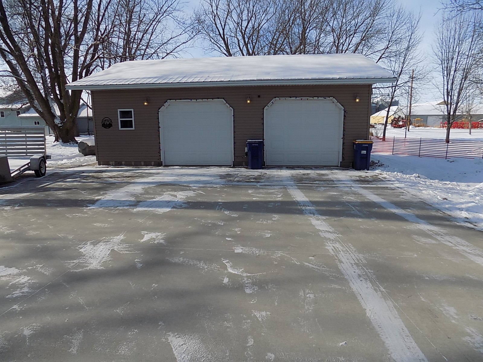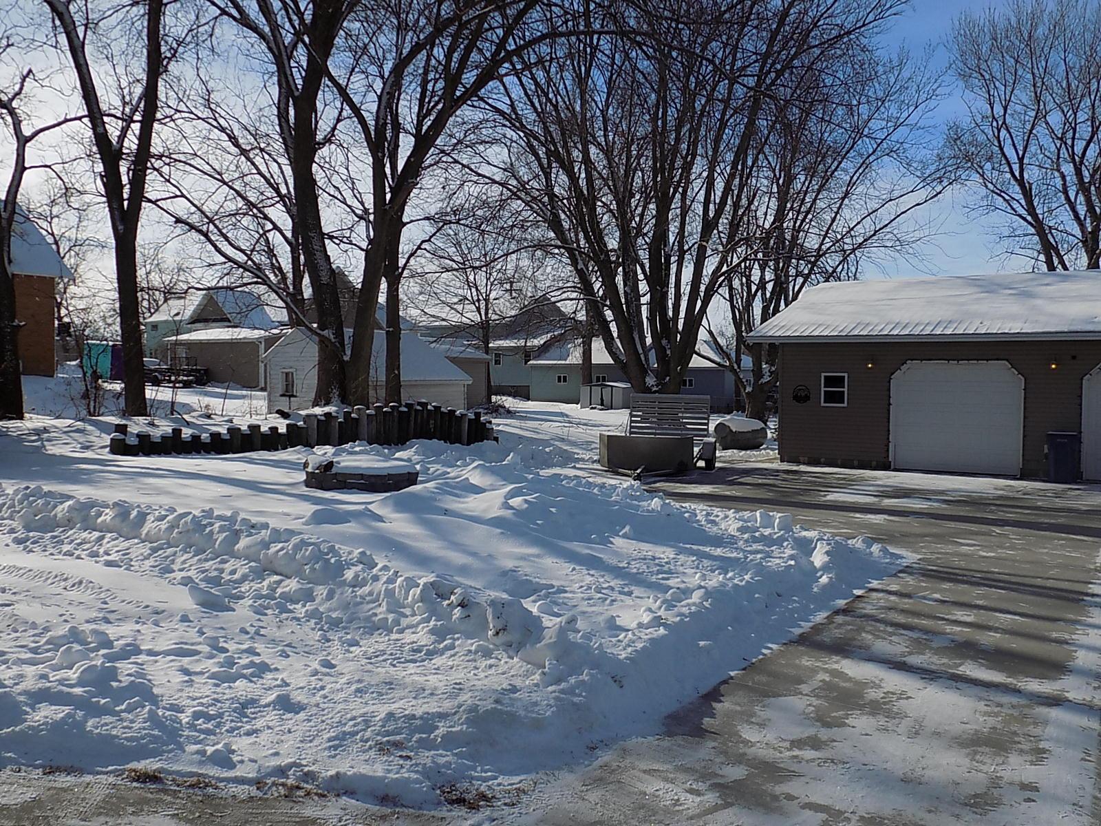 Exterior: Large 2 stall detached garage with heater. 6×8 deck off front of house