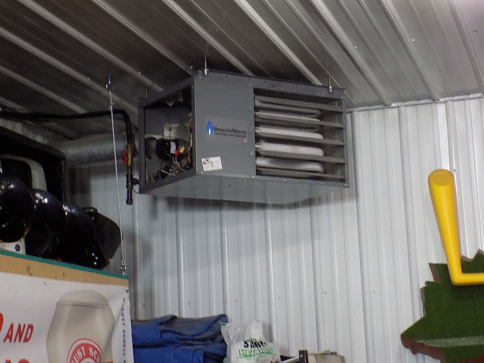 Natural gas hook up and meter on back.
